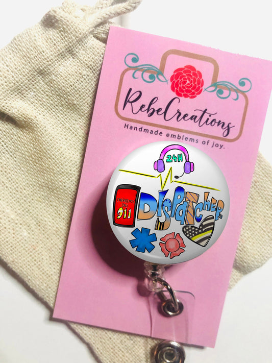 911 Dispatcher Badge Reel - 911 Dispatcher ID Badge Reel - ID Retractable badge, ID Badge Reel - Dispatcher Gift