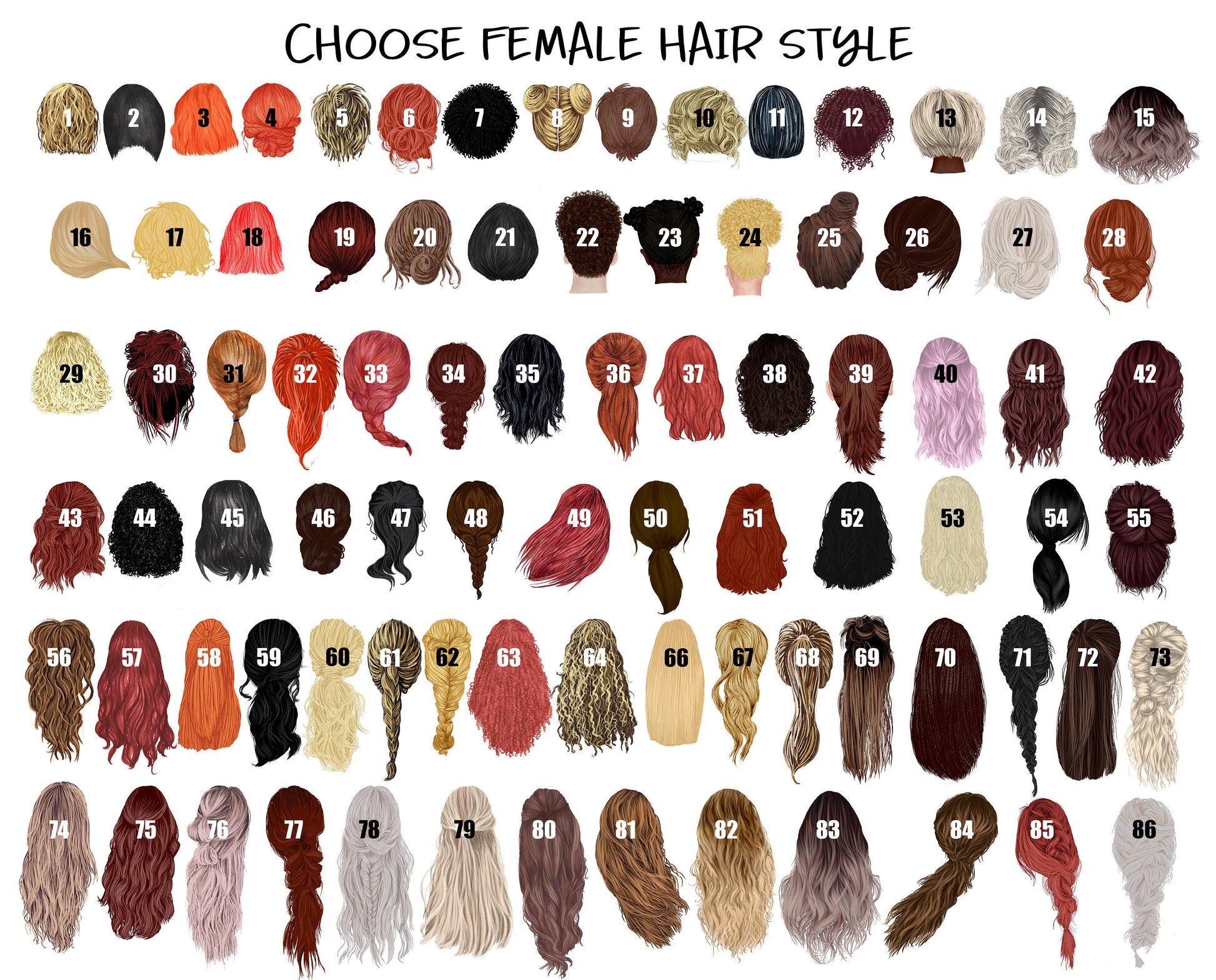 2. Choose skin color, hair style, and hair color