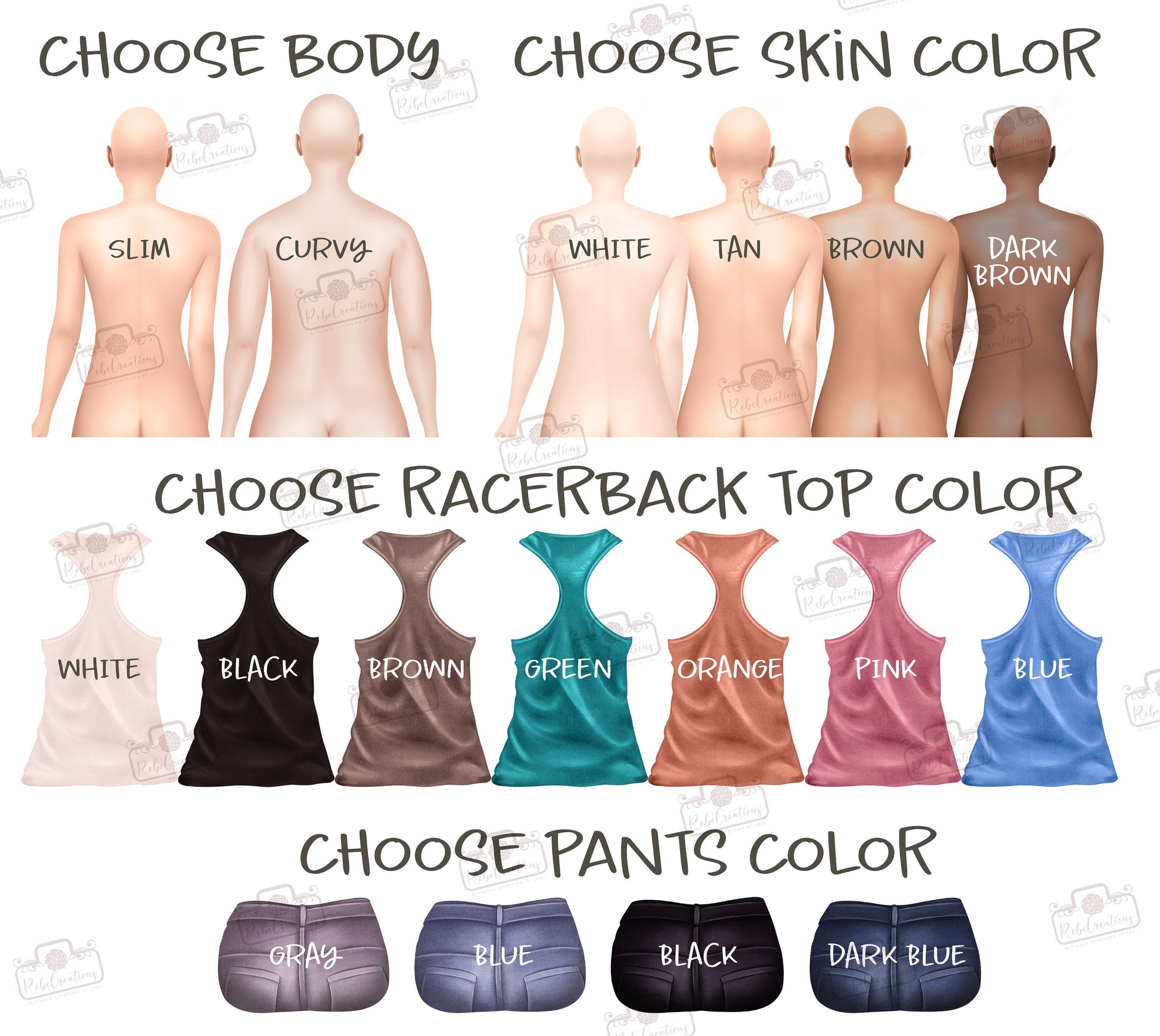 3. Choose racerback and jeans color