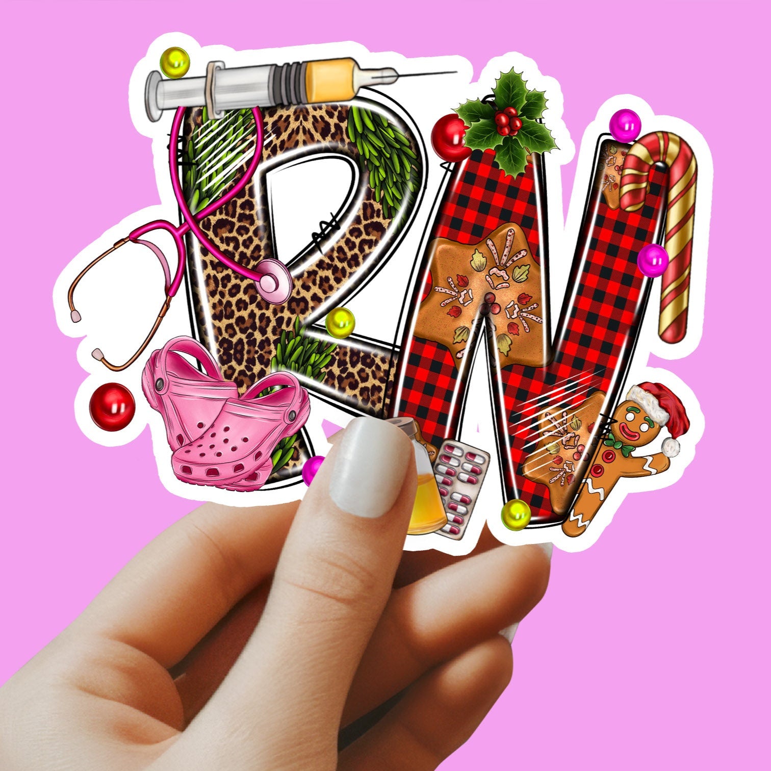 Christmas-Themed Nurse Sticker - RN Sticker - Nurse Gift - Decorative Sticker - Sticker