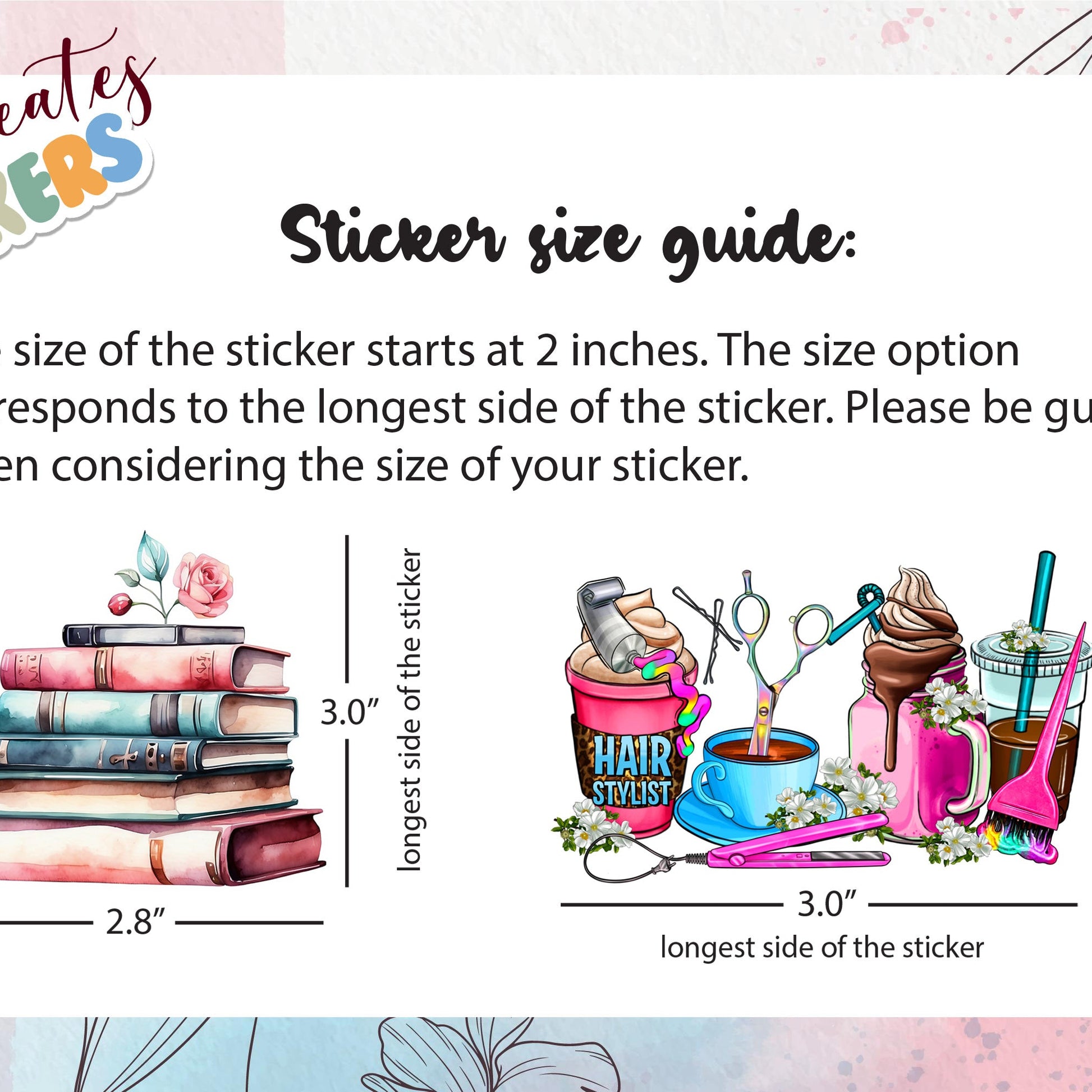• Sizes are based on the longest side of the design