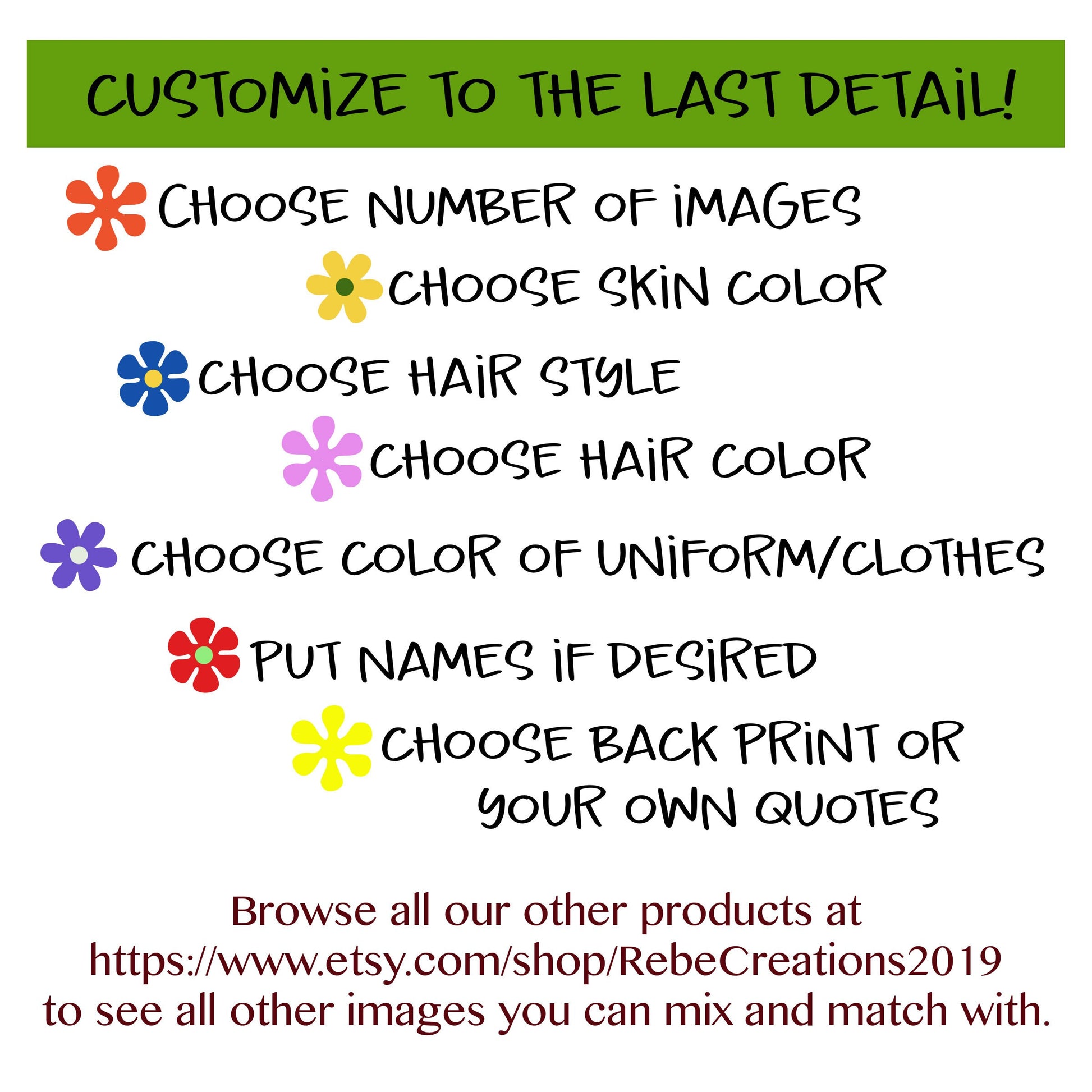 Browse all our other products at https://www.etsy.com/shop/RebeCreations2019 to see all other images you can mix and match with.