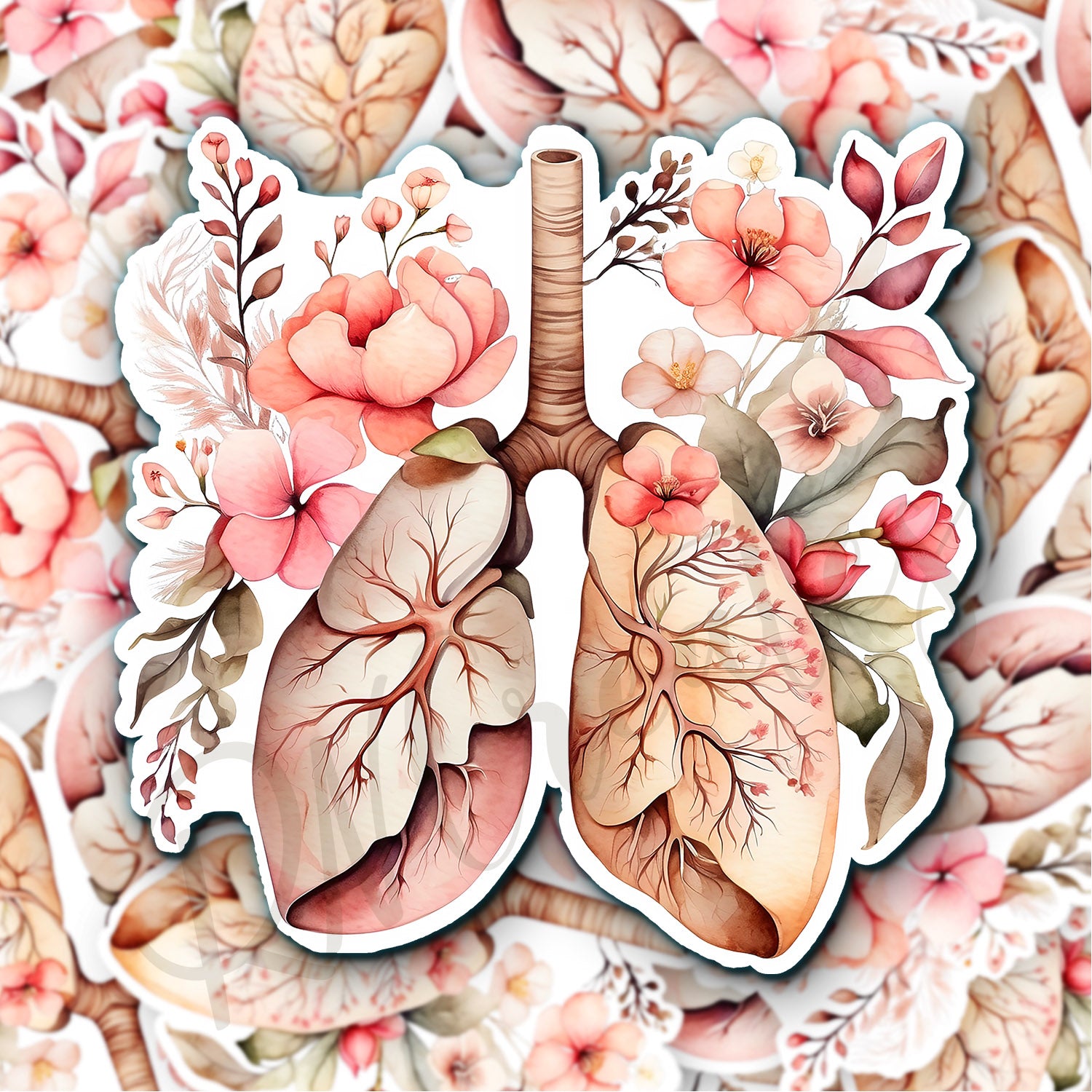 Lungs Sticker - Lungs with Flower Sticker - Anatomy Sticker - Medical Sticker - Medical Gift - Decorative Sticker - Sticker
