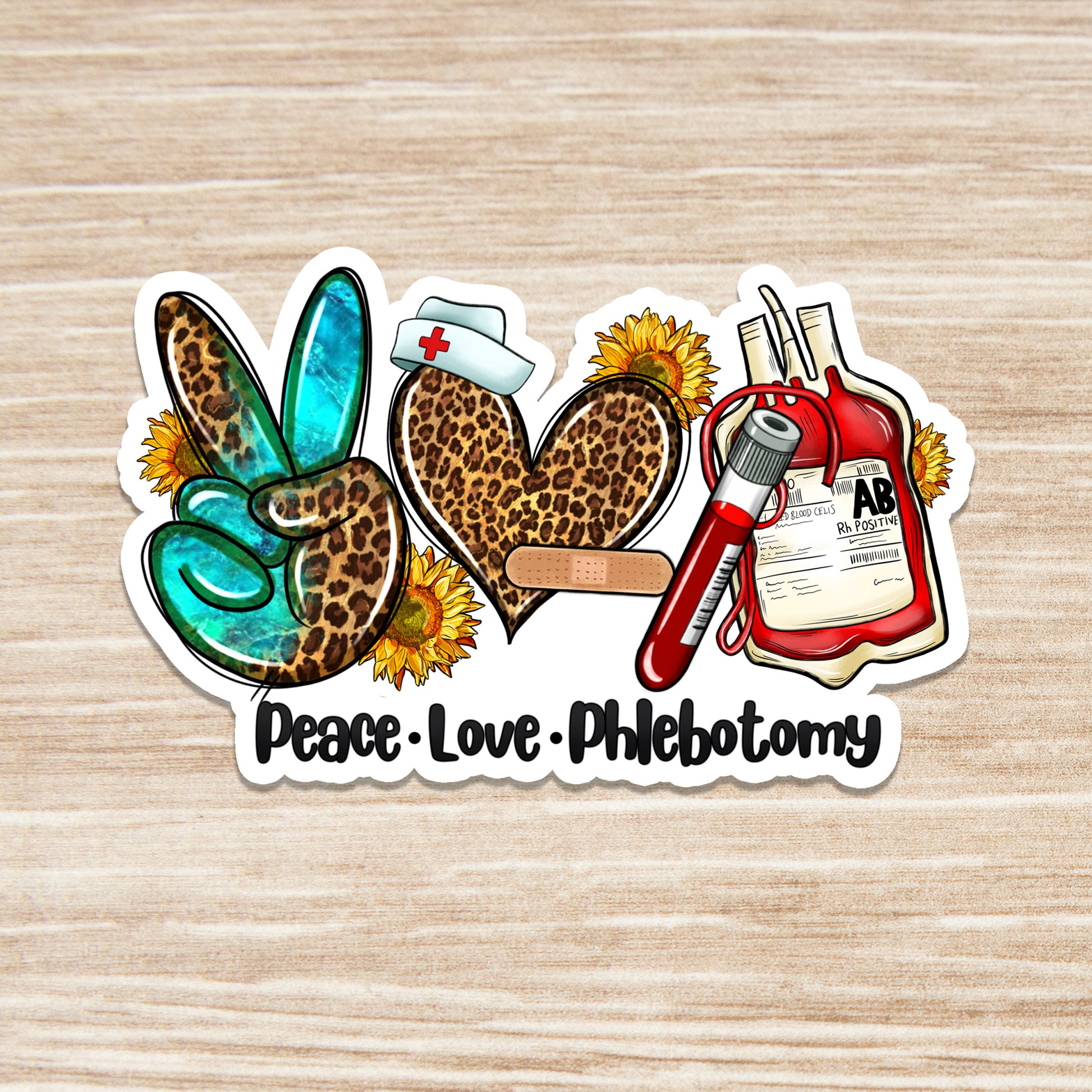 Peace Love Phlebotomy Sticker - Phlebotomist Sticker - Lab Tech Sticker - Decorative Sticker - Sticker