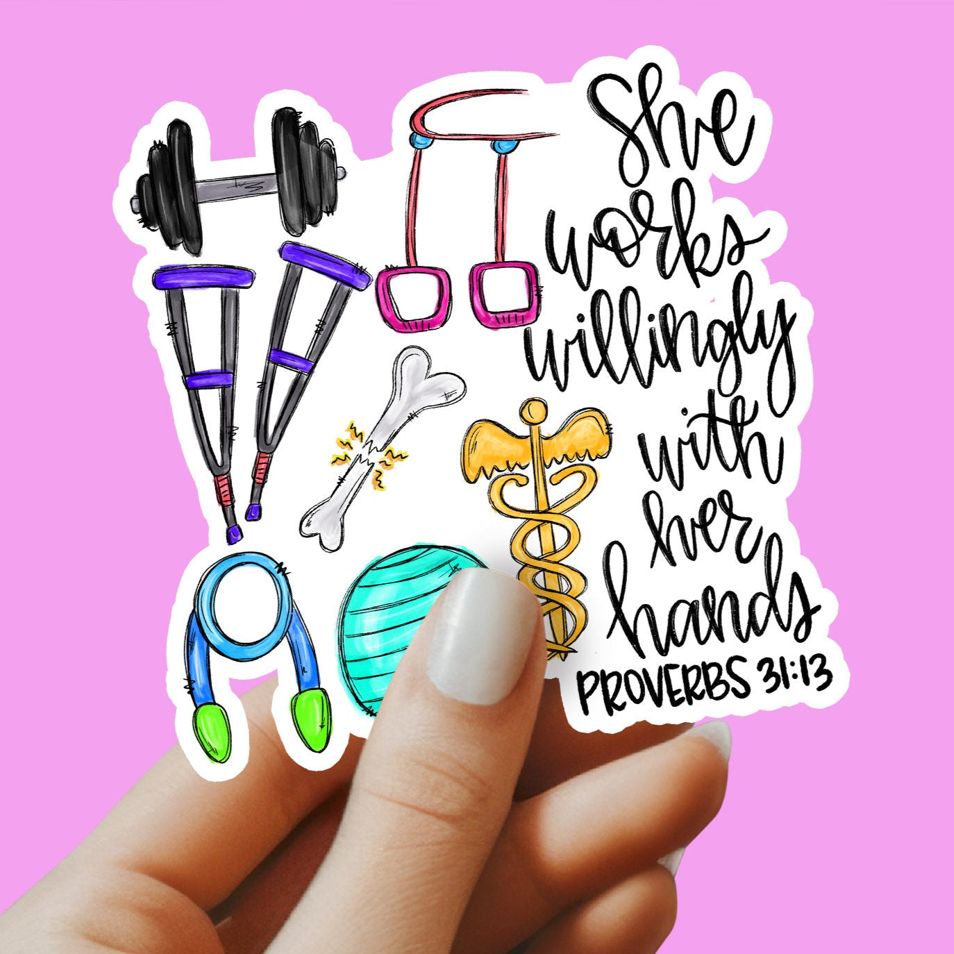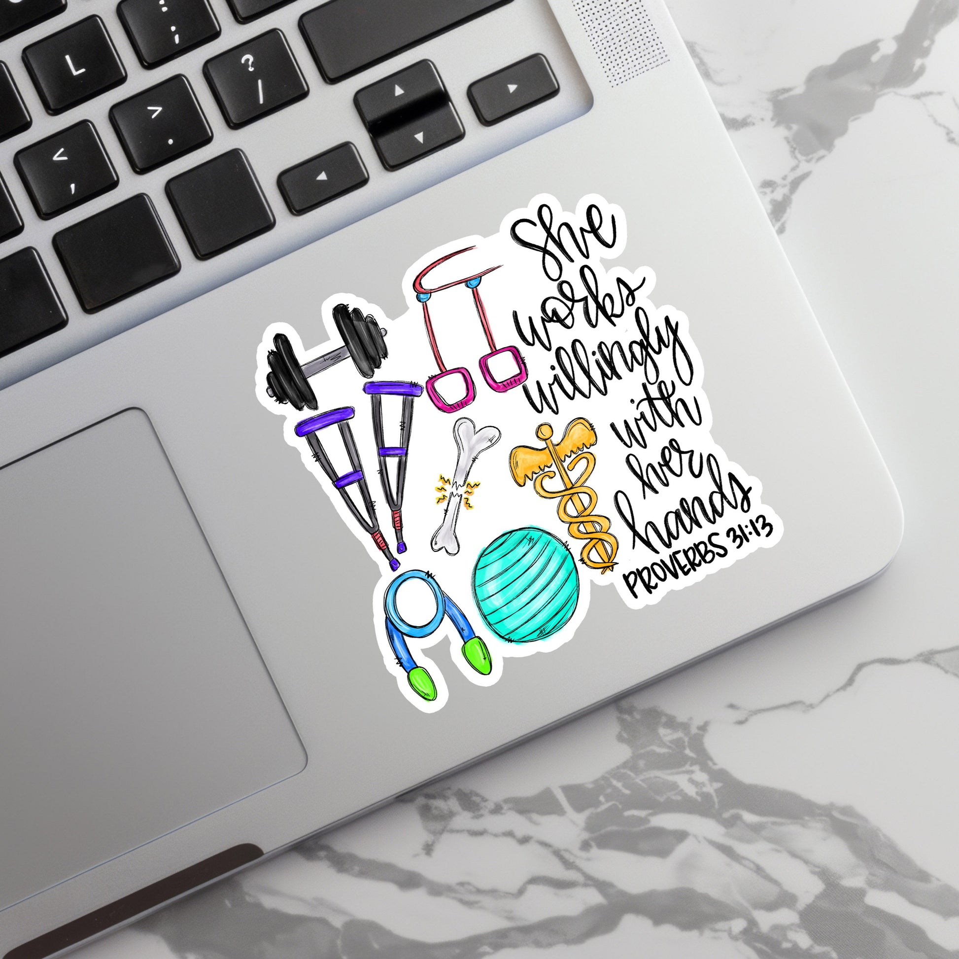 Physical Therapist Sticker - She Willingly Works with Her Hands Sticker - PT Sticker - PT Gift - Decorative Sticker - Sticker