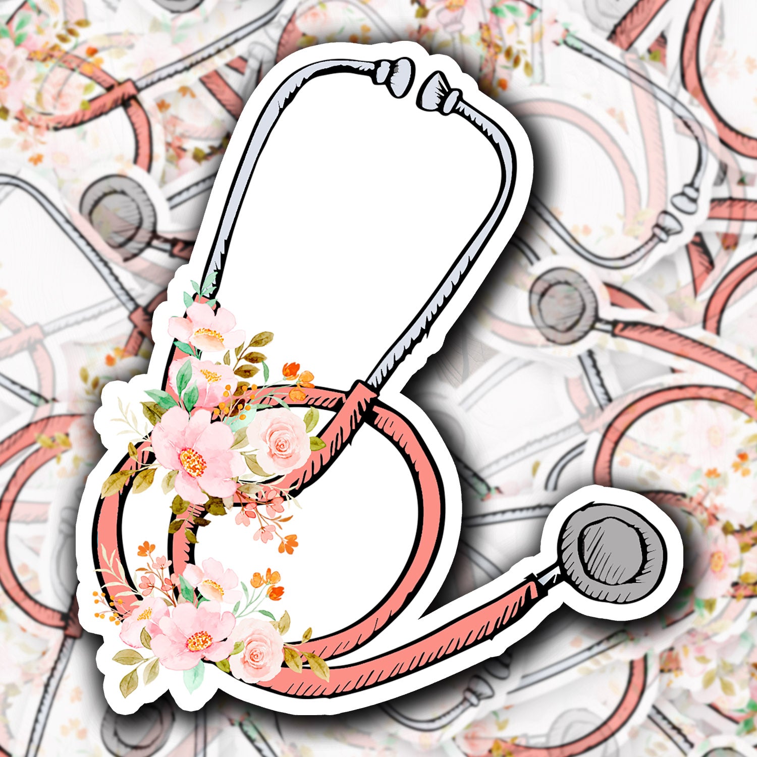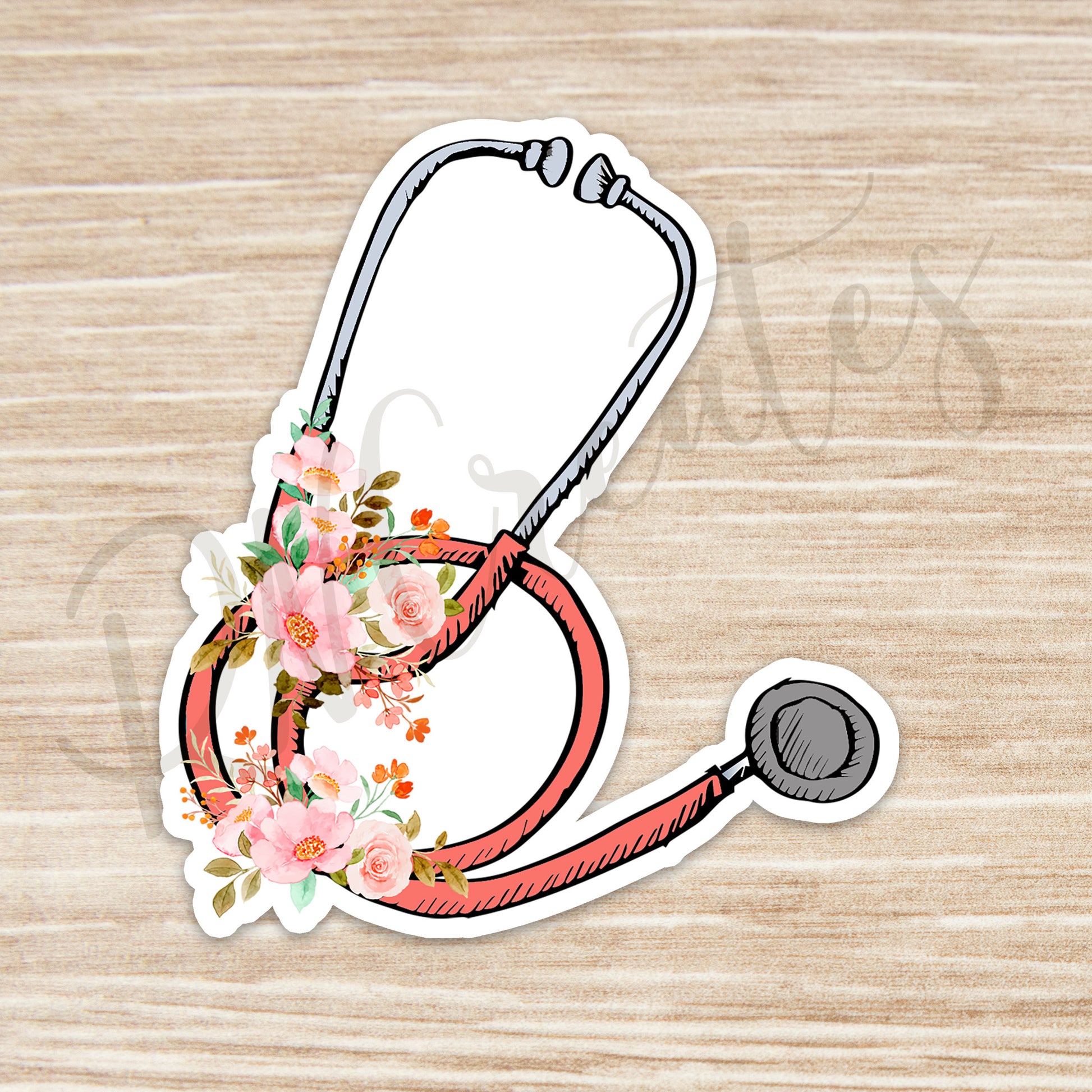 Stethoscope with flowers Sticker - Nurse Sticker - RN Sticker - Nurse Gift - Decorative Sticker - Sticker