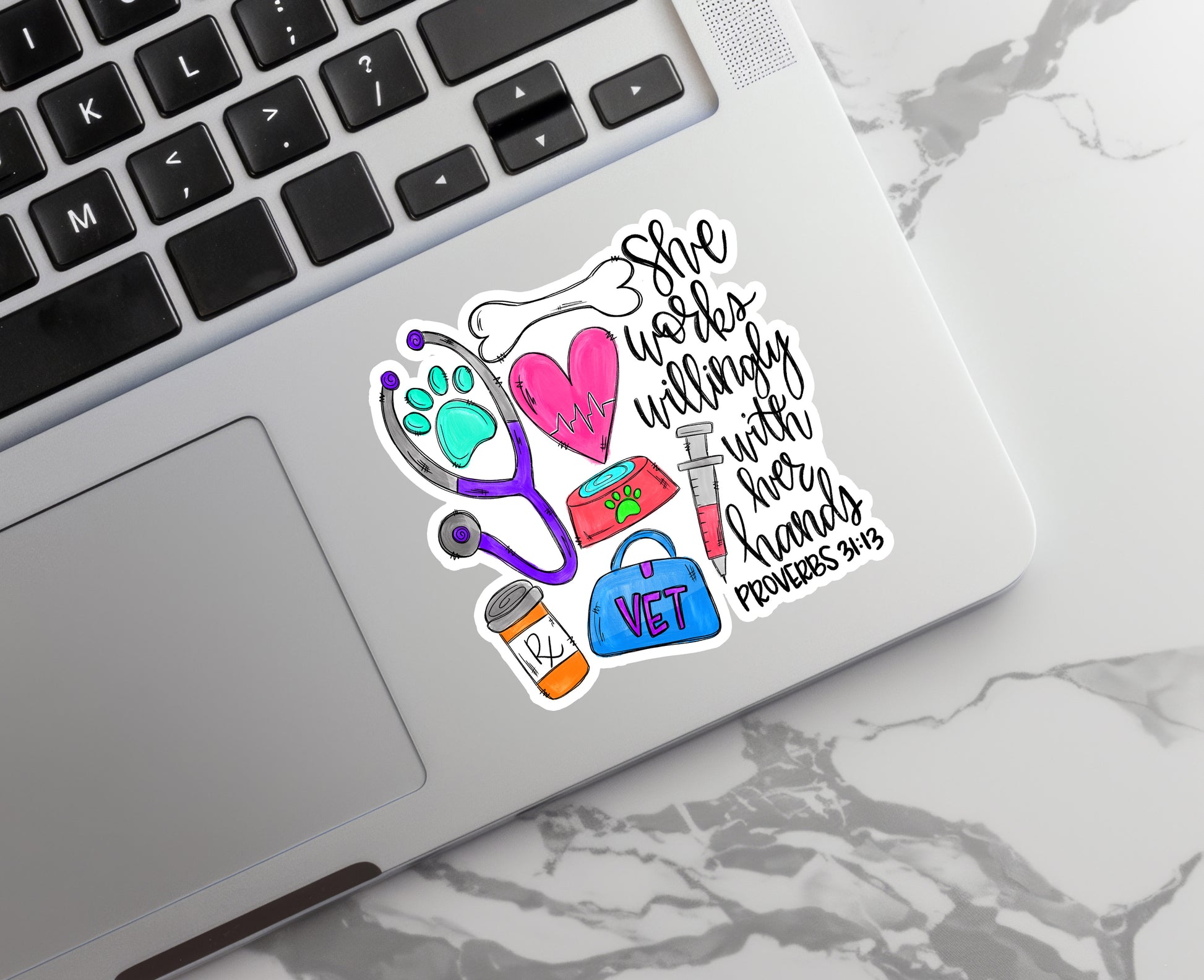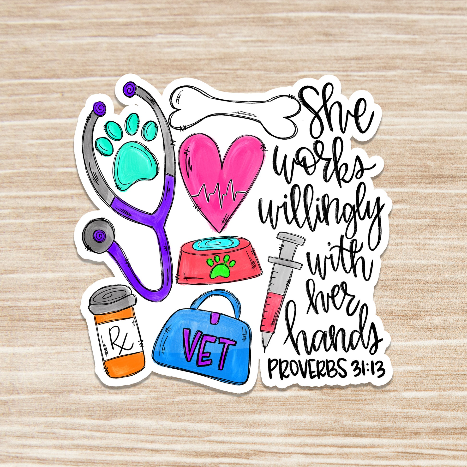 Proverbs 31:13 Veterinarian Sticker - She works willingly with her hands Sticker - Veterinary Sticker - Vet Sticker - Decorative Sticker - Sticker